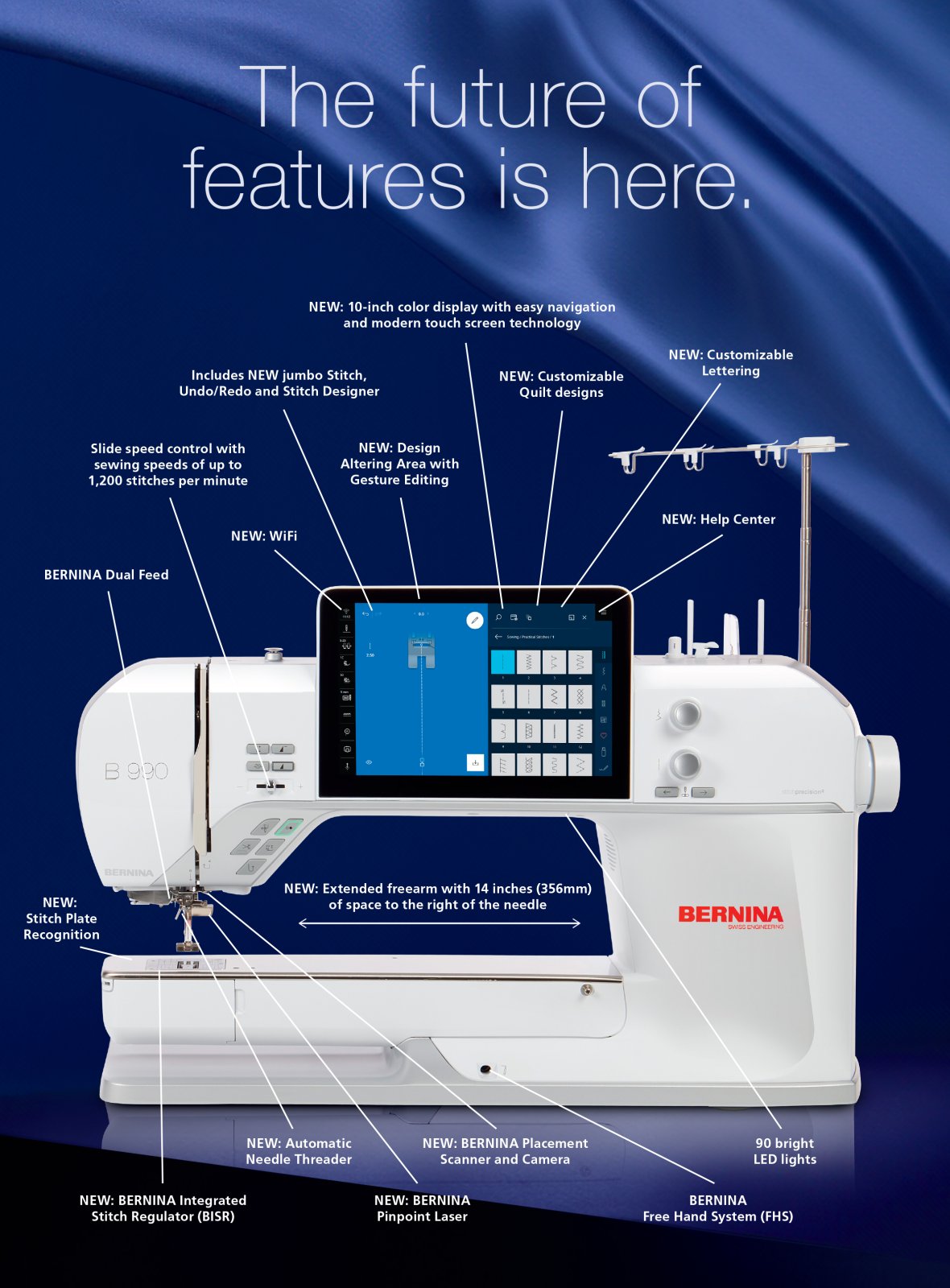 Introducing the BERNINA 990: Your gateway to elevating your Sewing, Quilting, and Embroidery experience.