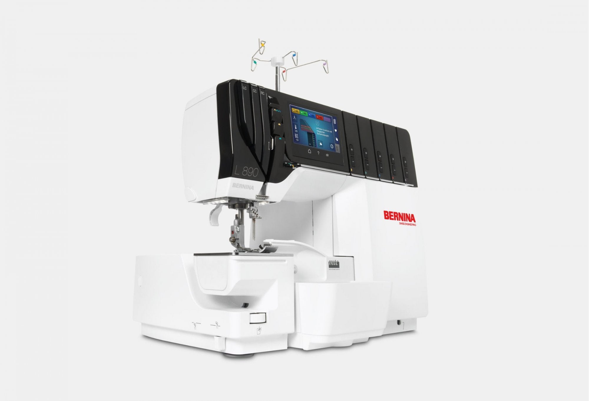 Color-coded one-path threading on the Bernina L 890 allows you to easily switch between overlock, coverstitch, or combo stitches in no time. Every machine set-up and operation is supported with animations accessible on the color touch screen.