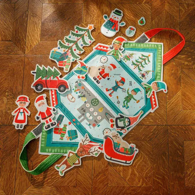 Create a fun play set with a Santa’s Workshop felt panel. Designed by Jennifer Long of Sew A Story, the panel features a workshop that folds to create a carrying case, elves, reindeer, Santa and Mrs. Claus, and lots of holiday helpers. Embellish the felt dolls with hand embroidery, or simply cut and play. Store all the pieces inside the pockets of Santa’s Workshop.