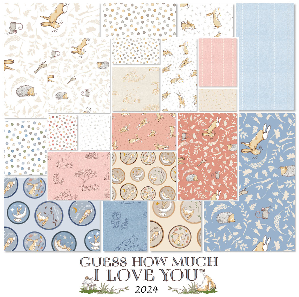 Guess How Much I Love You 2024 by Anita Jeram for Clothworks brings to life the beloved characters from the classic children's tale. Adorned with charming illustrations of Little Nutbrown Hare and his friends, this delightful collection features a soothing palette of soft pinks, tranquil blues, and creamy whites. Perfect for baby quilts, nursery decor, and sweet garments, each fabric piece captures the warmth and tenderness of the story, making it an ideal choice for projects that celebrate love and affection. Embrace the whimsy of childhood with this enchanting collection!